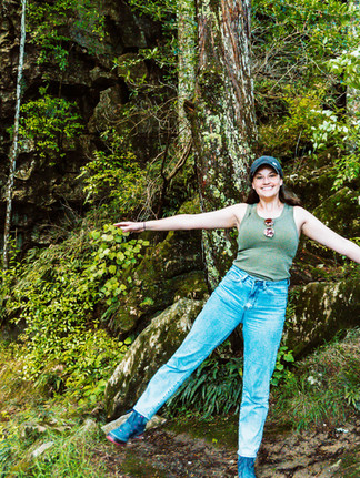 Before hitting the road, we had to stop by the Delta Coffee stand again, just a short drive from our hotel in Tūrangi. We grabbed our delicious coffees, topped with a chocolate-covered marshmallow shaped like a trout, and began driving west, on our way back to the coast. After almost 2 hours of driving, we decided to have a quick stop and stretch our legs. We had pinned a walking trail on our maps and thought that would be a great place to take our break. We walked a short 30 minutes, navigating through the muddy track and across a swing bridge, before reaching the lookout. We had low expectations, having not researched this trail beforehand, but we were nicely surprised when we reached the end and looked out to the spectacular Omaru waterfall. We had the place to ourselves, so we stayed for a while, soaking up the sun and listening to the water crash into the pool below.